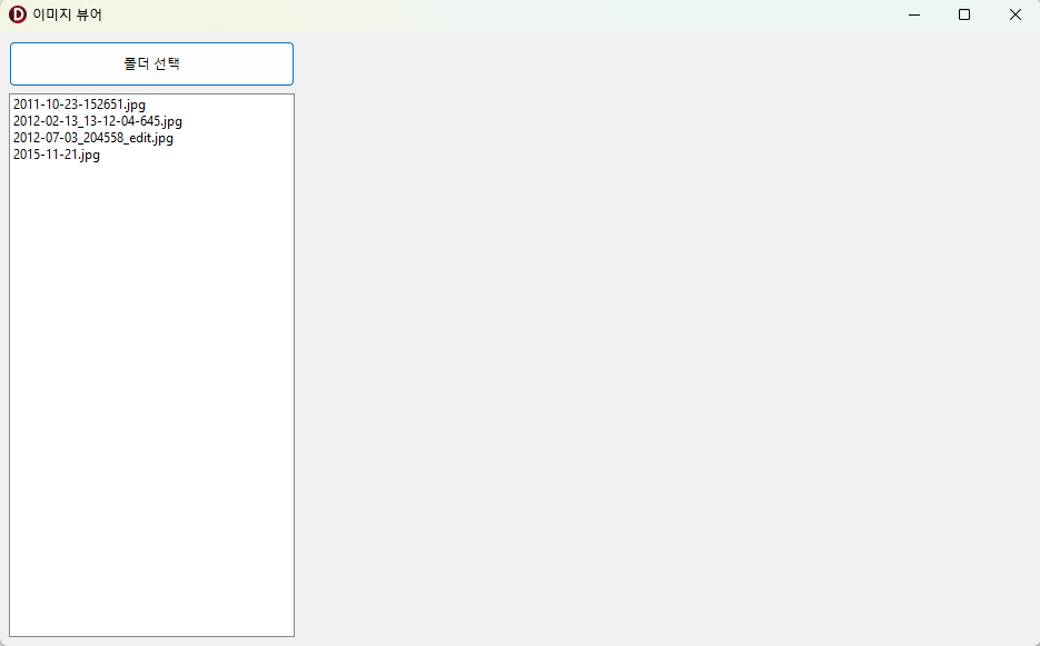 사진 폴더를 선택하면 해당 폴더에 jpg 파일 목록이 list box 에 표시됩니다.